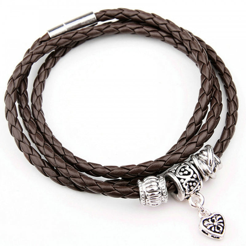 - Material: Leder, Metall-Charms versilbert, Handarbeit, geflochten
